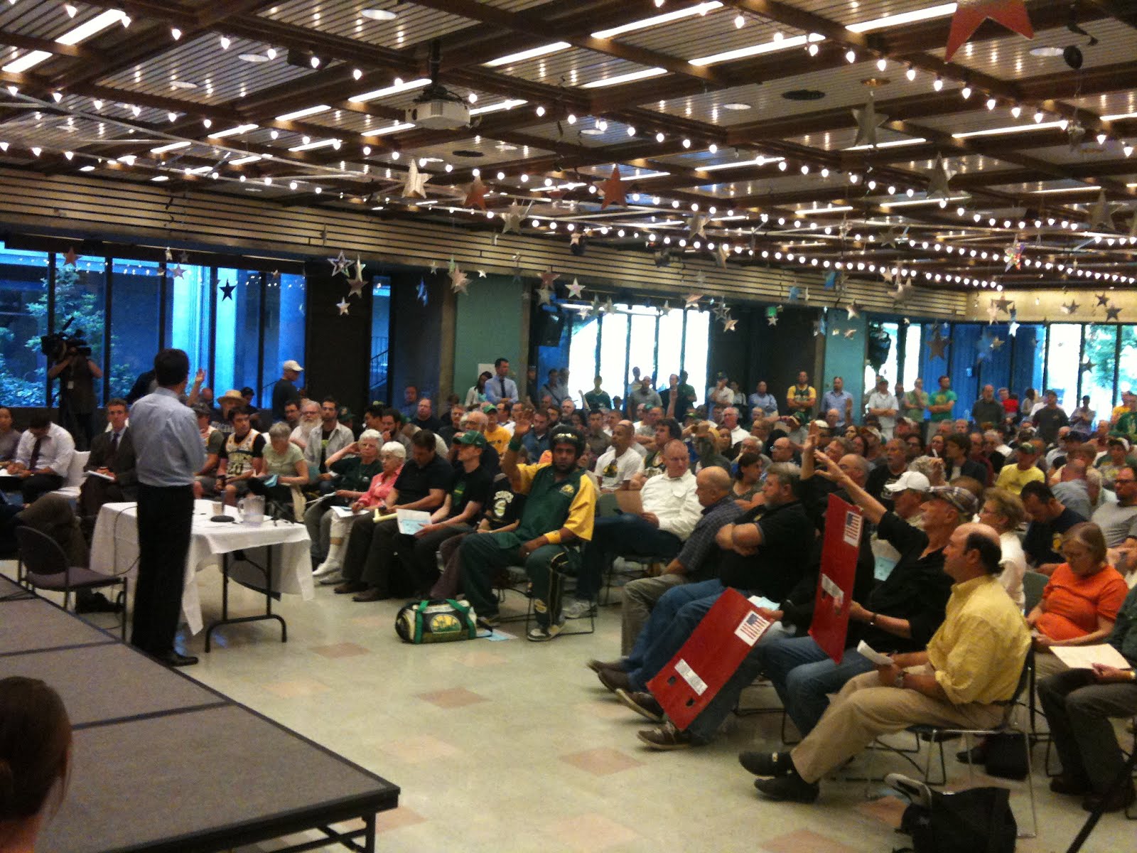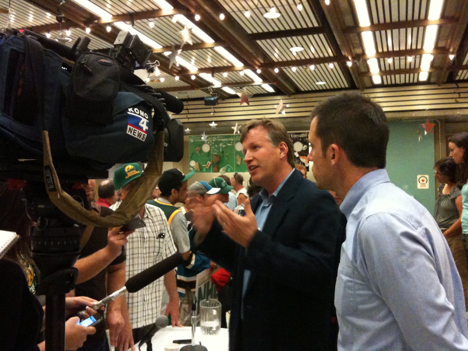 King County Councilman Bob Ferguson (standing) answered a variety of questions from a pretty good size crowd at North Seattle Community College. Both Mr. Ferguson and Seattle City Councilman Mike ÓBrien did well to keep the room from getting out of hand, where at times there were people yelling, and at times clapping.